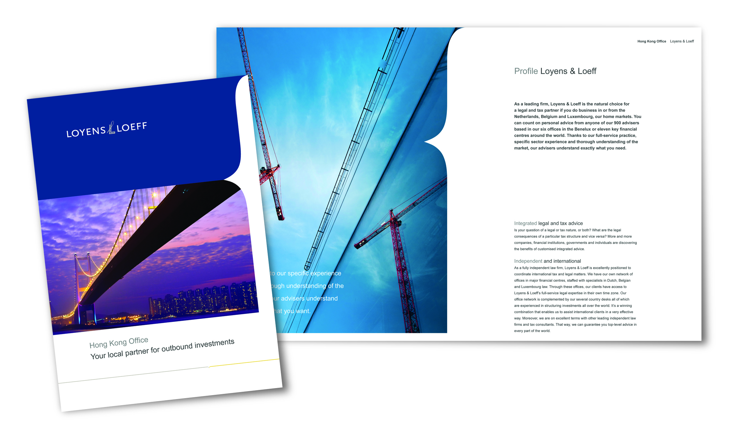 De vraag van Loyens & Loeff aan 52 graden was om met behoud van het logo en de basiskleuren een vernieuwde vormgeving en moderne look & feel neer te zetten. Het nieuwe ontwerp is transparant, toegankelijk en passend bij de professionaliteit, cliëntgerichtheid, kwaliteit en zakelijkheid die kenmerkend is voor Loyens & Loeff.