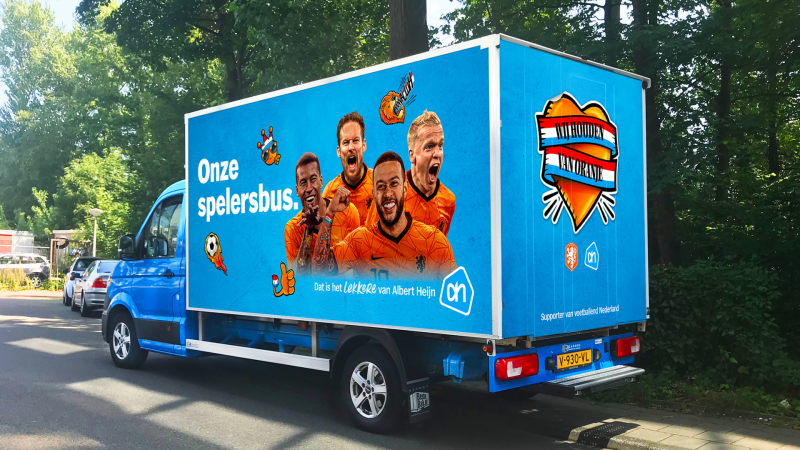 Klanten van Albert Heijn sparen de komende weken Hollandicons: tattoos en stickers met verschillende EK-emoticons waarmee iedereen zichzelf, de fiets én het huis helemaal in Oranjesferen kan versieren. Exclusief bij Albert Heijn zijn er aanmoedigingstattoos met de namen van spelers uit het Nederlands elftal. In de tv-commercial van Albert Heijn krijgen selectiespelers Memphis Depay, Georginio Wijnaldum, Daley Blind en Donny van de Beek een peptalk van supermarktmanager Ilse.