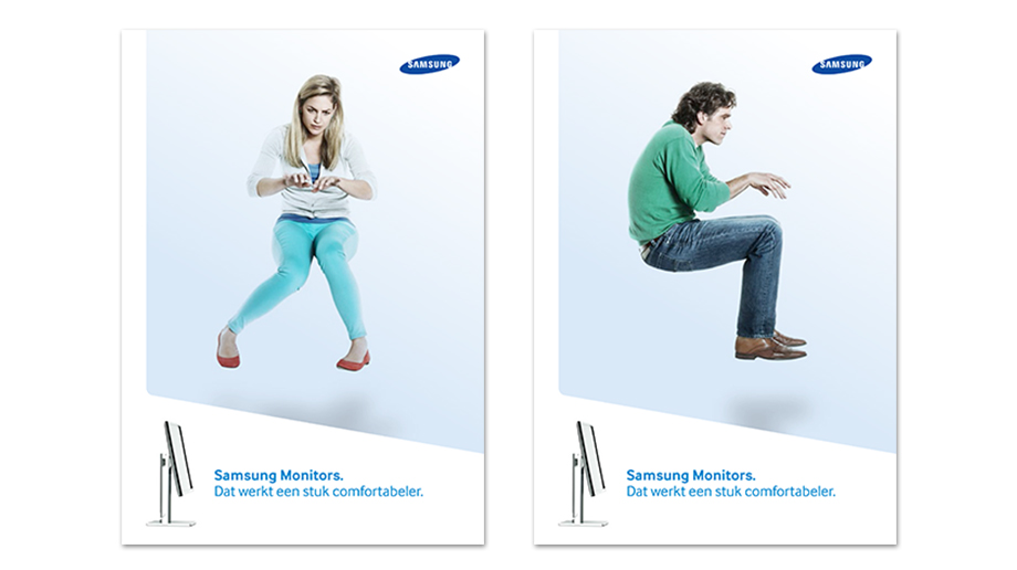 Samsung is de campagne gestart voor een betere houding tijdens het werken met de computer. In de video ‘In welke houding zit jij’ ziet de kijker doodnormale mensen in bizarre posities op de meest gekke plekken.