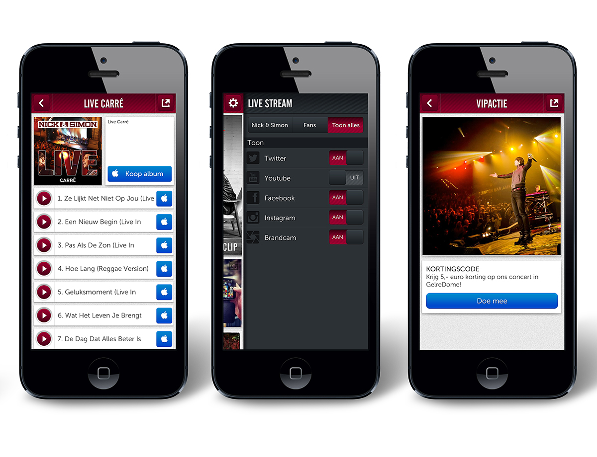 De app werd bedacht en ontwikkeld door digital agency dpdk. Met de app blijven fans altijd op de hoogte via een livestream van alle social media kanalen van Nick & Simon, met de optie om live te volgen wat andere fans plaatsen op social media over de artiesten.