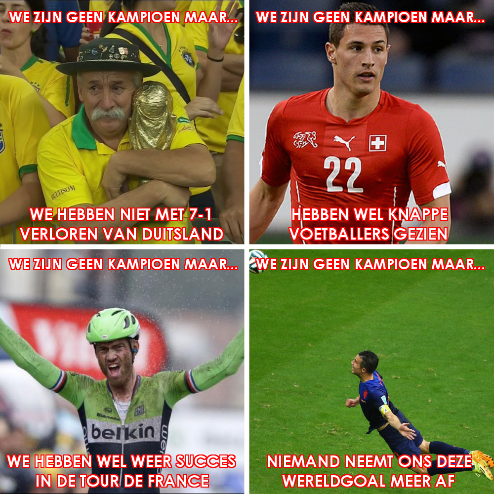 Iedereen kan op de site wezijngeenkampioenmaar.nl een foto uploaden en een slagzin verzinnen, waarmee duidelijk wordt dat we wel balen van de uitschakeling, maar tegelijkertijd ook heel trots zijn op de prestaties van het Nederlands elftal.