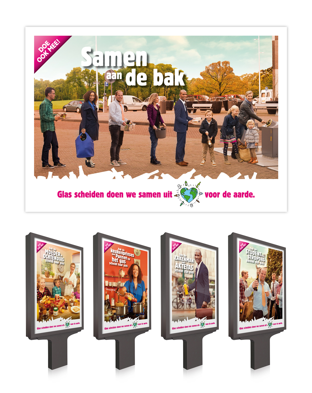 In 2014 en 2015 gaan we op regionaal niveau samenwerken met verschillende gemeenten. Die samenwerking bestaat uit ondersteunen van nieuwe en reeds aanwezige initiatieven, zoals bijvoorbeeld bestaande campagnes, ondersteunen van onderzoek naar motivatie en gedrag, of infrastructuur. De landelijke campagne is tot stand gekomen in samenwerking met de Nederlandse glasrecyclers, verenigd in de Stichting Duurzaam Verpakkingsglas.