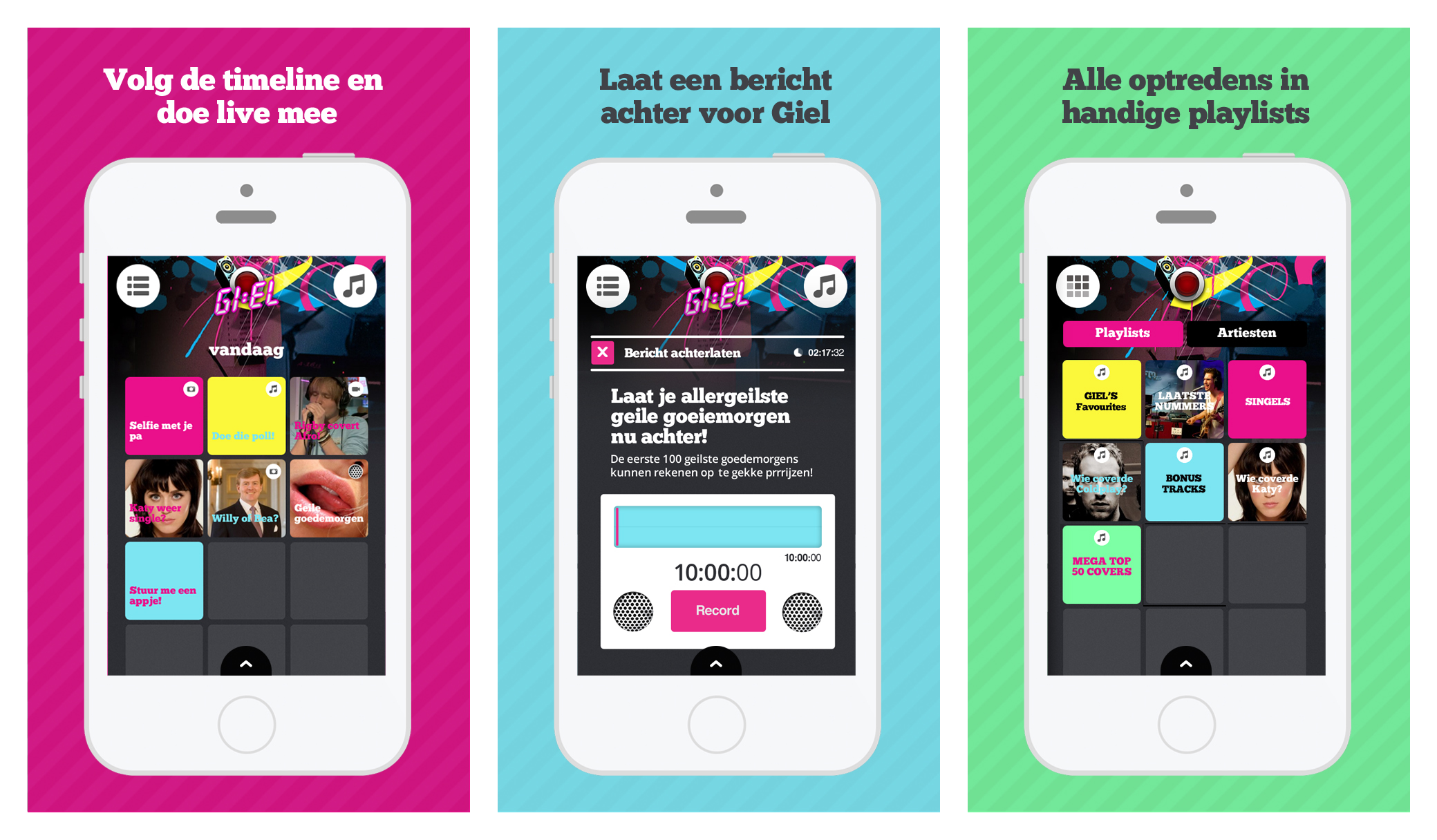 Dit jaar viert Giel Beelen 10 jaar ochtendshow. Speciaal voor Beelen ontwikkelde digitaal bureau Greenberry in opdracht van BNN-VARA de vernieuwde Giel! app. Met de app wordt de luisteraar directer betrokken bij het programma; je kunt constant invloed uitoefenen op de show en samen met Giel radio maken. Ook kun je met de app ruim 2000 live nummers direct op je mobiel beluisteren.