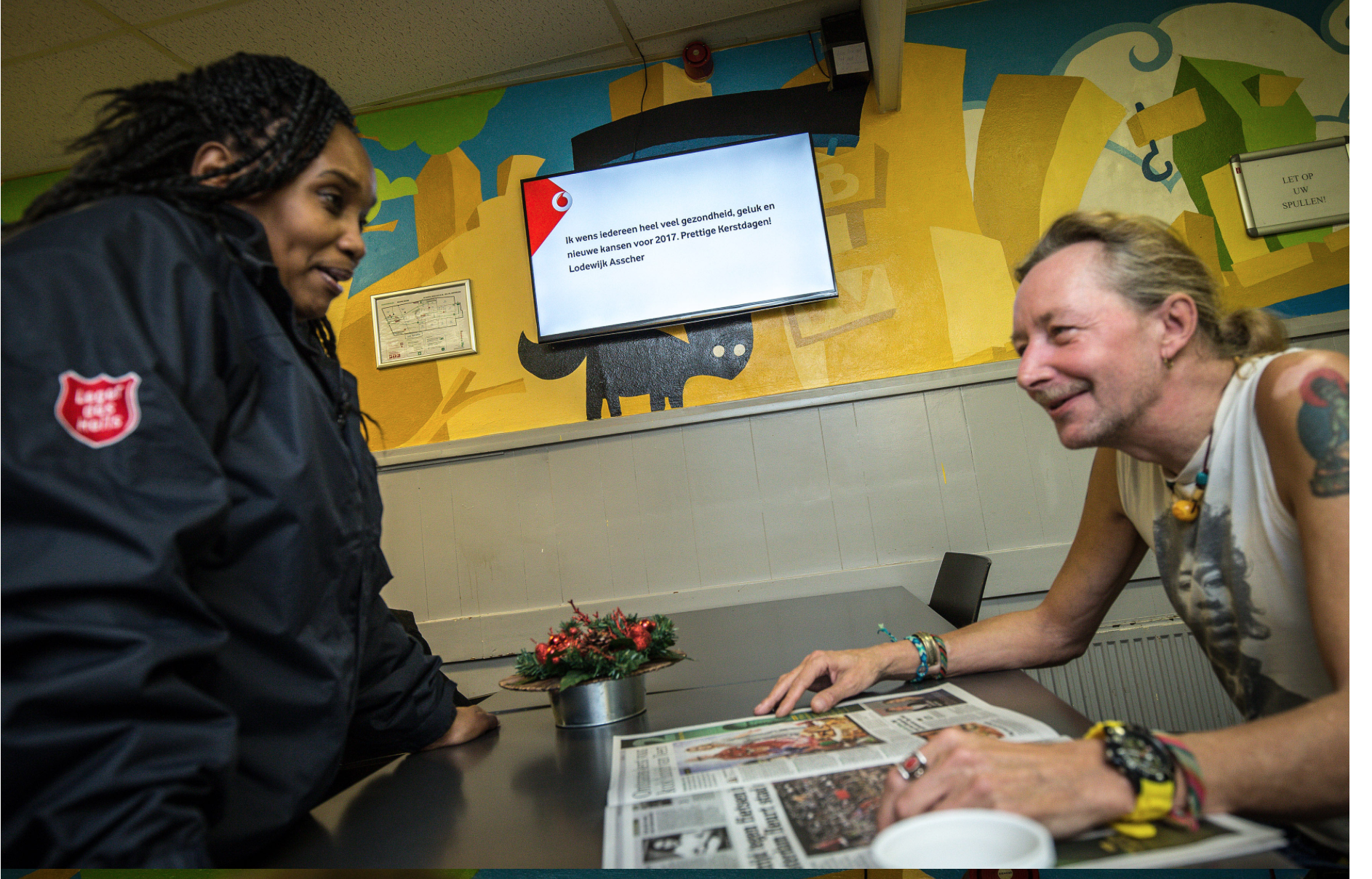 Vandaag werd de eerste SMS-kerstkaarten verstuurd door Vicepremier Lodewijk Asscher en politiewoordvoerder Ellie Lust. Naast het delen van de SMS’jes via Street Messenger worden in de verschillende opvanglocaties van het Leger des Heils in Amsterdam, Utrecht en Eindhoven schermen geplaatst waarop de kerswensen live te zien zijn. Op deze locaties zal Vodafone prepaidkaarten doneren aan de daklozen. Een telefoon hebben zij over het algemeen wel, maar op deze manier hebben ze ook voldoende beltegoed om met hun dierbaren contact te leggen tijdens de feestdagen.
