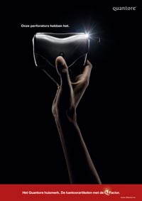 Deze nieuwe campagne introduceert het huismerk van Quantore naar eigen zeggen een assortiment kantoorartikelen met een prijs/kwaliteitverhouding, waarmee de aangesloten kantoorvakhandels een gezond rendement kunnen behalen: de kantoorartikelen met de Q-factor. Bureau: bakker | linssen id