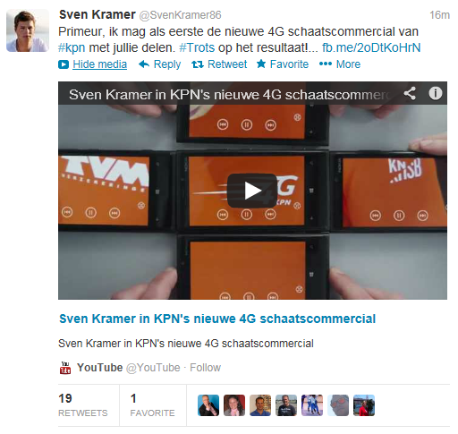Daarom is er vanaf vrijdag een nieuwe commercial te zien op tv, waarin schaatsheld Sven Kramer en de kinderen van de KPN Juniorschaatsclub te zien zijn. De commercial gaat over KPN’s band met het schaatsen; een prachtige, Nederlandse sport, die goed bij het bedrijf past. Door het schaatsen in al zijn verschijningsvormen te steunen, wil KPN als hoofdsponsor van de KNSB de sport verbreden en schaatsend Nederland verbinden.