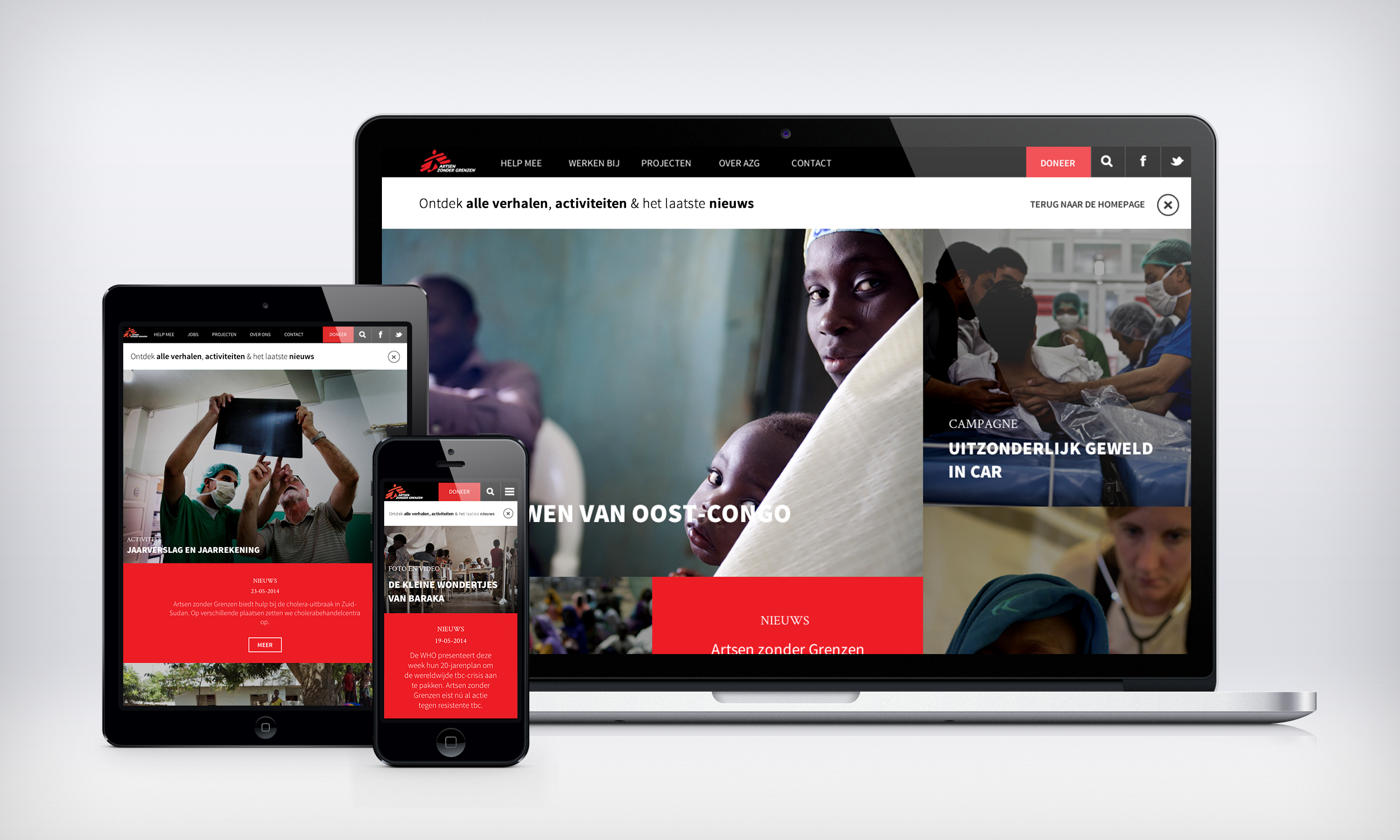 De nieuwe website draagt uit waar de organisatie voor staat: hulp geven dáár waar hulp het hardst nodig is, met eigen medische teams, onpartijdig en onafhankelijk. De ervaringen van hulpverleners, projectinformatie, nieuwsupdates uit projecten, video’s en beeld geven een duidelijk inzicht in het werk van Artsen zonder Grenzen en hoe gelden worden besteed.