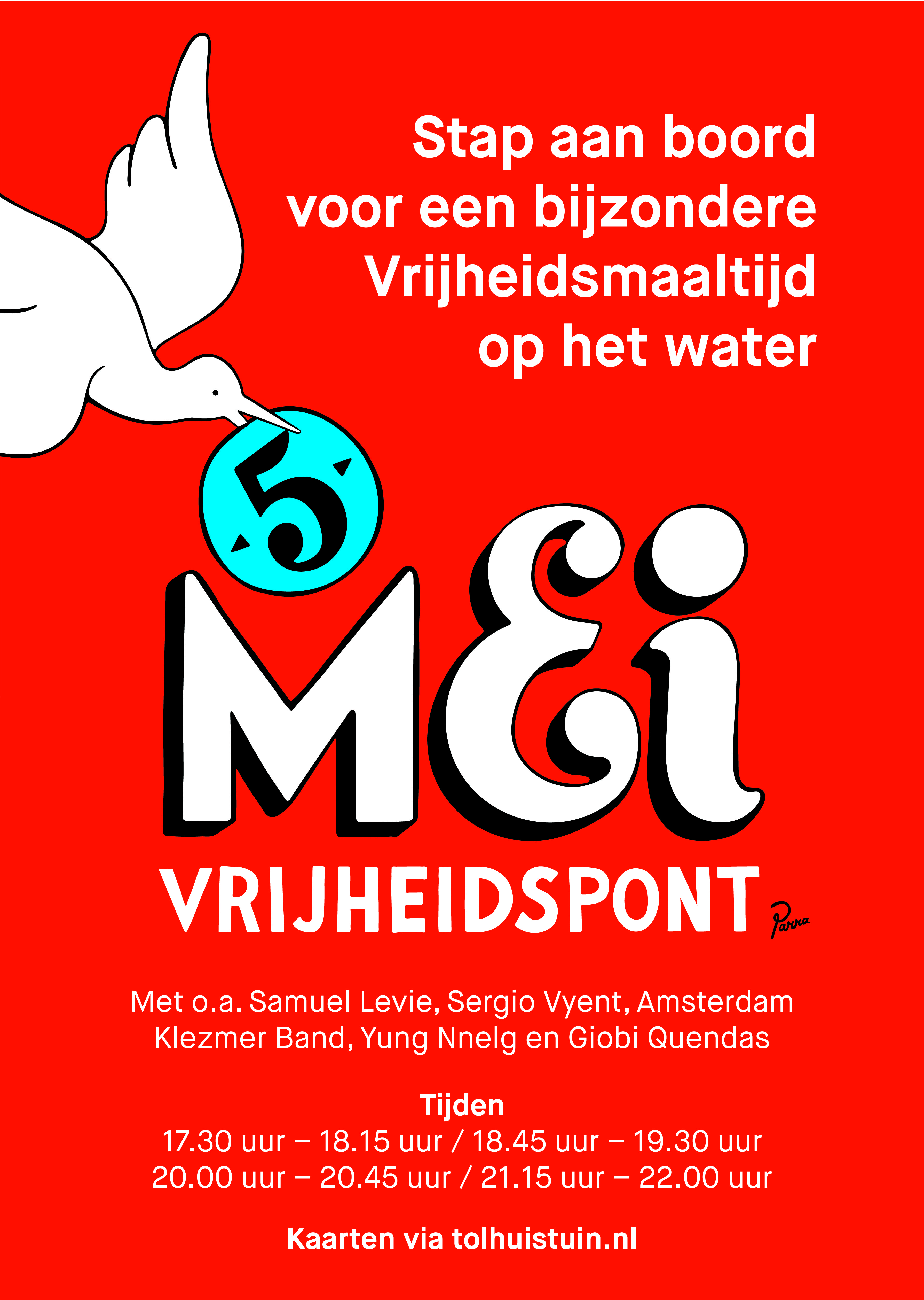 Samuel Levie, oprichter van campagnebureau Food Cabinet en initiatiefnemer van de Vrijheidssoep en de Vrijheidspont, serveert op de pont zijn bijzondere twist op de Vrijheidssoep van 2022, die is ontwikkeld door chef Nadia Zerouali. Levie: "In 2020 ontwikkelden we de Vrijheidssoep: een Vrijheidsmaaltijd in blik waardoor we in het coronajaar toch samen konden eten. Toen ontstond onze droom om deze maaltijd uit te laten groeien tot een concept waarbij we heel het land samen kunnen laten dineren. Ieder jaar groeit het initiatief, en het is onze ambitie dat er over een aantal jaar miljoenen mensen tegelijkertijd van de Vrijheidssoep kunnen genieten. Dit jaar heeft Nadia Zerouali een fantastisch recept ontwikkeld waarmee we hopen honderdduizenden mensen te verbinden. Het is geweldig dat we deze soep dit jaar op zo’n iconische Amsterdamse locatie met elkaar kunnen delen."