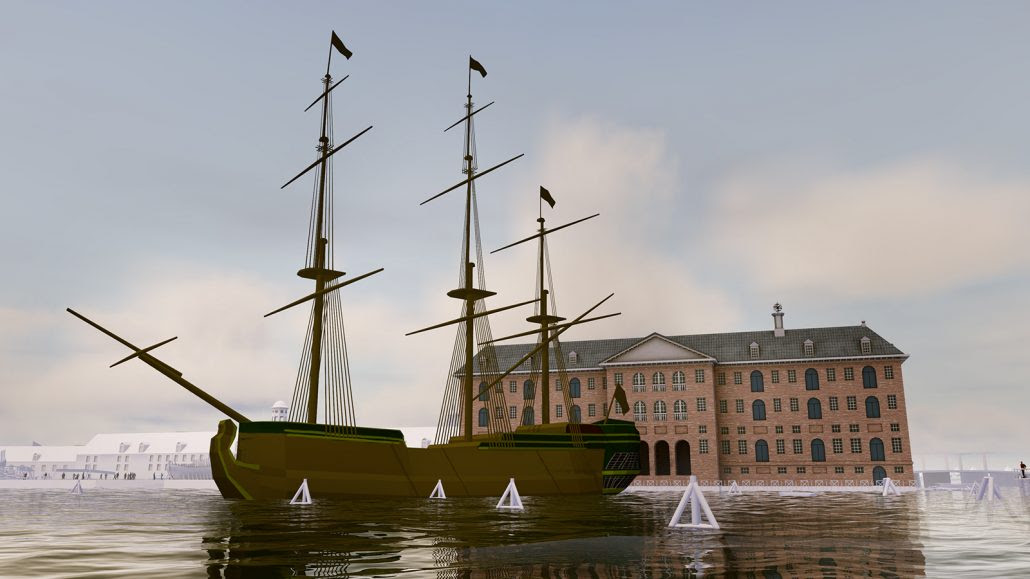Het was misschien een omstreden, maar daarom niet minder interessante periode uit de vaderlandse geschiedenis. De VR-experience is een bijzondere tijdreis waarin je een rondvlucht krijgt door de Amsterdamse haven ten tijde van de Gouden Eeuw. Je maakt deze reis niet alleen, het is een sociale beleving die je samen ervaart, omdat bezoekers geen koptelefoon op hebben.
