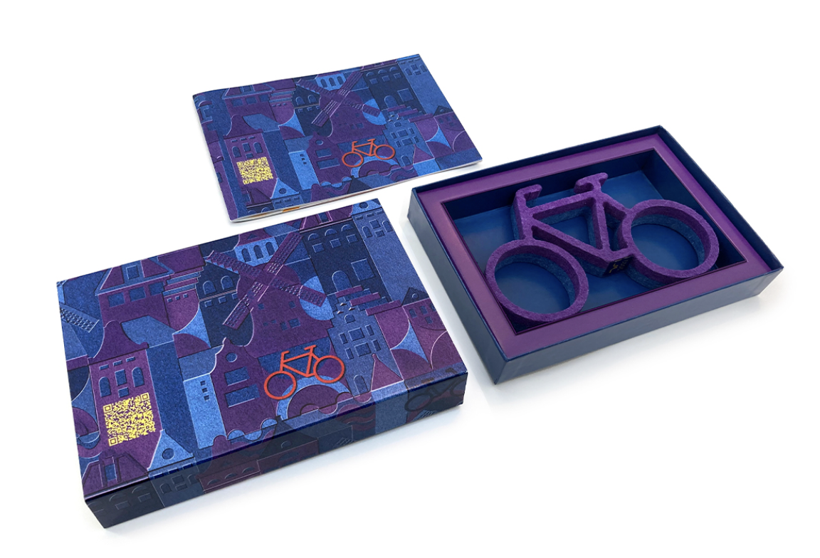 De dit jaar gepresenteerde fiets is zorgvuldig opgebouwd uit PET-vilt, een duurzaam materiaal gemaakt van gerecyclede plastic flessen. Bezoek de projectpagina op onze website om de verschillende edities van de Randstad Bikes door de jaren heen te ontdekken.