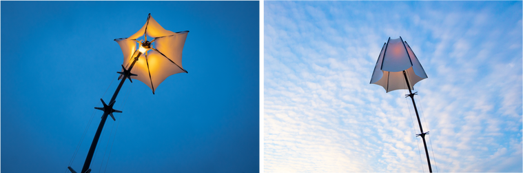 Bloomlight, een design van de Amsterdamse ontwerpstudio VOUW, reageert op voorbijgangers op straat en lijkt te ademen als een organisch wezen. De lamp is geïnspireerd op bewegingen in de natuur en het principe van lichtvervuiling. Bij het naderen 'voelt' de lamp de aanwezigheid van personen en buigt deze zich nieuwsgierig naar voorbijgangers toe. Deze bloeit vervolgens langzaam open en begroet de aanwezigen met een zacht licht.