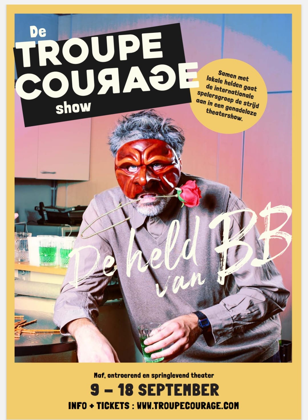 Troupe Courage speelt theater op plekken waar andere gezelschappen niet komen, zoals een vluchtelingenkamp in Palestina of een wijkcentrum in Ghana. Het concept is altijd hetzelfde: leven en theater maken met locals. Door gebruik te maken van universele thema’s en archetypen weet de groep overal ter wereld mensen te activeren en hun publiek op te zwepen. "We proberen mensen op hun eigen verbeelding aan te spreken, want daarin is alles mogelijk," aldus van Beurden. Met 'De Held van BB' is het gezelschap terug in Nederland.