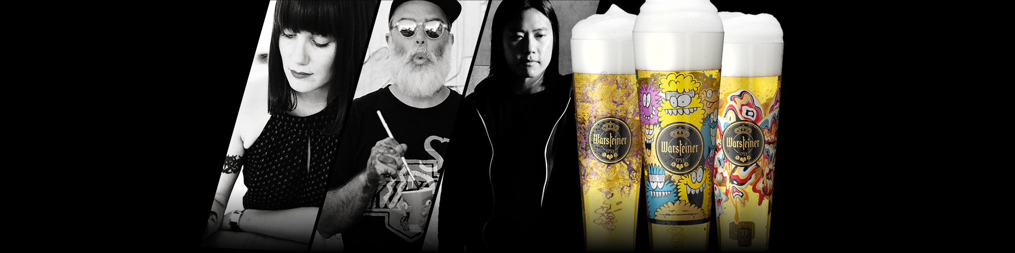 11.35 uur - Bierglazen saai? Niet als het aan Warsteiner ligt. De bierbrouwer schakelde de kunstenaars Fafi, Kevin Lyons en James Jean in voor de Warsteiner Art Collection 2015.