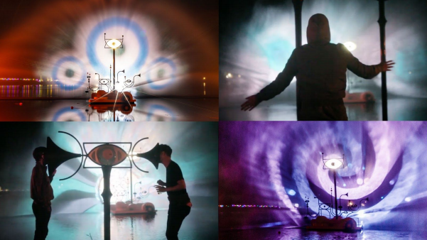 ‘Periscopista is onze hommage aan nieuwsgierigheid, ze kijkt vanaf het meer naar het festival en ze barst daarna, vol van enthousiasme, uit in een wolk van mist die door de interactie met het publiek bespeeld kan worden’, zegt Biersteker over zijn uitvinding.