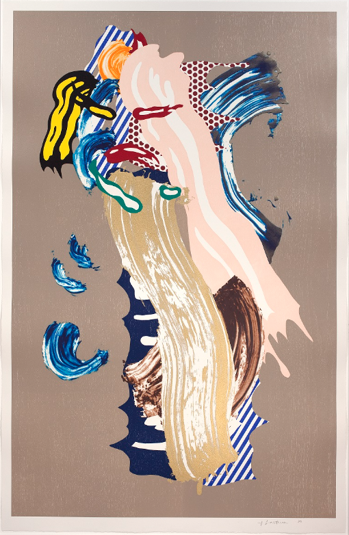 In 1965 maakte Lichtenstein zijn eerste ‘Brushstrokes’, schilderijen die als geïsoleerd object een of meerdere penseelstreken reproduceren: “De Brushstroke was de manier om deze romantische symbolen van bravoure in omgekeerde wijze te portretteren, het classicisme. De Brushstroke speelt een grote rol in de kunstgeschiedenis. Het betekent haast letterlijk schilderij of kunst.” Lichtenstein was al sinds de jaren ’50 aangetrokken tot abstracte gebaren en penseelstreken die ook weer zichtbaar werden in zijn werk uit de jaren ’80, maar dan met een nieuw gevoel van vrijheid. De op zichzelf staande penseelstreek van de jaren ’60 versmelt op minder georganiseerde wijze wanneer hij thema’s aanpakt zoals Van Gogh’s ‘ De Zaaier ” of Willem de Kooning’s serie ‘ Woman ’.