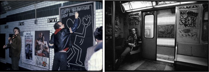 In de jaren 80 tekende Haring zijn beroemde subway drawings in de New Yorkse metrostations, waarbij de metroreizigers als een toevallig publiek het proces aanschouwden. Haring was zich bewust van het spektakel dat hij daarmee creëerde en vroeg vriend en fotograaf Tseng Kwong Chi om hem vast te leggen tijdens het tekenen. De tekeningen geven een krachtige indruk van de veelal maatschappelijke en actuele thema's in Harings werk, zoals nucleaire energie, de televisiecultuur en andere populaire iconografie. De tentoonstelling toont zeven subway drawings, aangevuld met Tsengs foto's van een tekenende Haring in de metro.
