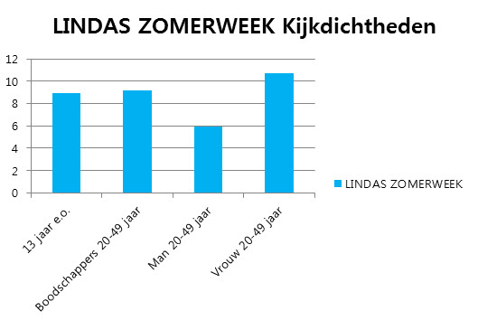 Donderdag 27 juni heeft Linda Paul de Leeuw en Euvgenia Parakhina te gast gehad dit heeft een kijkdichtheid van 9,3 en een marktaandeel van 21,6 behaald. Vrijdag de 28e juni heeft Linda afgesloten met Gordon en Brigitte Kaandorp. Dit 'grappige' duo heeft een kijkdichtheid van 8,6 behaald met een marktaandeel van 25,5. De gemiddelde kijkdichtheid van Linda’s Zomerweek is uitgekomen op 8,9 op basis van 13 jaar en ouder.