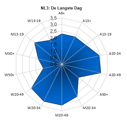 Opvallend is dat vrouwen uit de doelgroep 20-34 jaar graag blijft kijken. Toch niet echt een doelgroep die je meteen bij ‘oorlogsprogrammering’ zou verwachten. De gemiddelde kijkdichtheid van de vrouwen ligt op 3,1% en is daarmee hoger dan het mannelijke deel van deze doelgroep (2,9%).