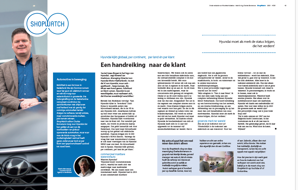 Gelijktjdig met het verhaal van Martijn Bovée verschijnt in FONK magazine 281 een interview met Berend Jan Hoekman, managing director van Hyundai Motor Netherlands: 'Hyundai is een wereldspeler, maar realiseert zich, dat klanten wereldwijd verschillen.'