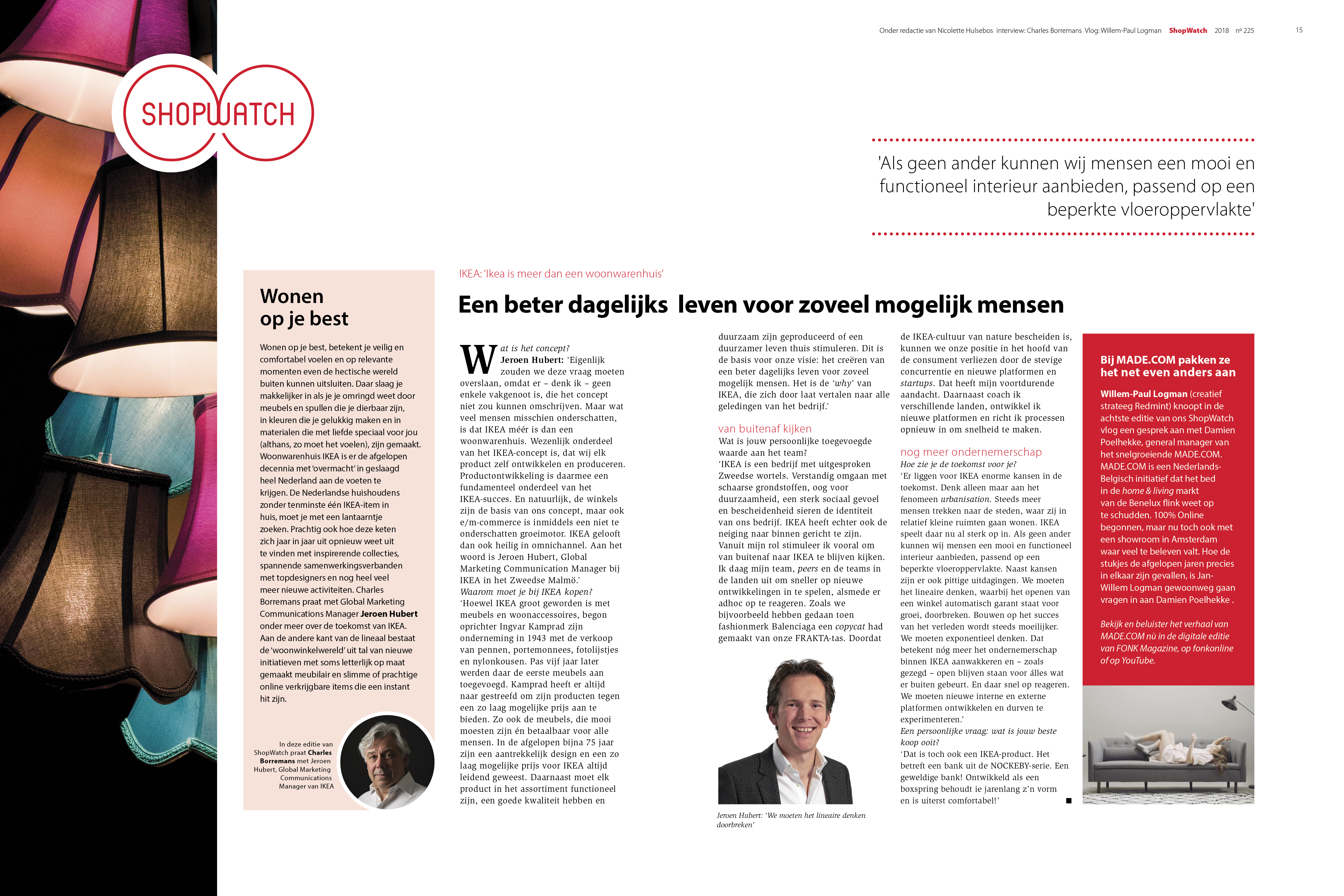 Morgen is, naast het verhaal van Poelhekke in FONK 225 het woord aan Jeroen Hubert van marktleider IKEA. Hubert deelt zijn visie op trends en ontwikkelingen op woongebied met Charles Borremans. Welke rol IKEA hierin voor zichzelf ziet, lees je hier: