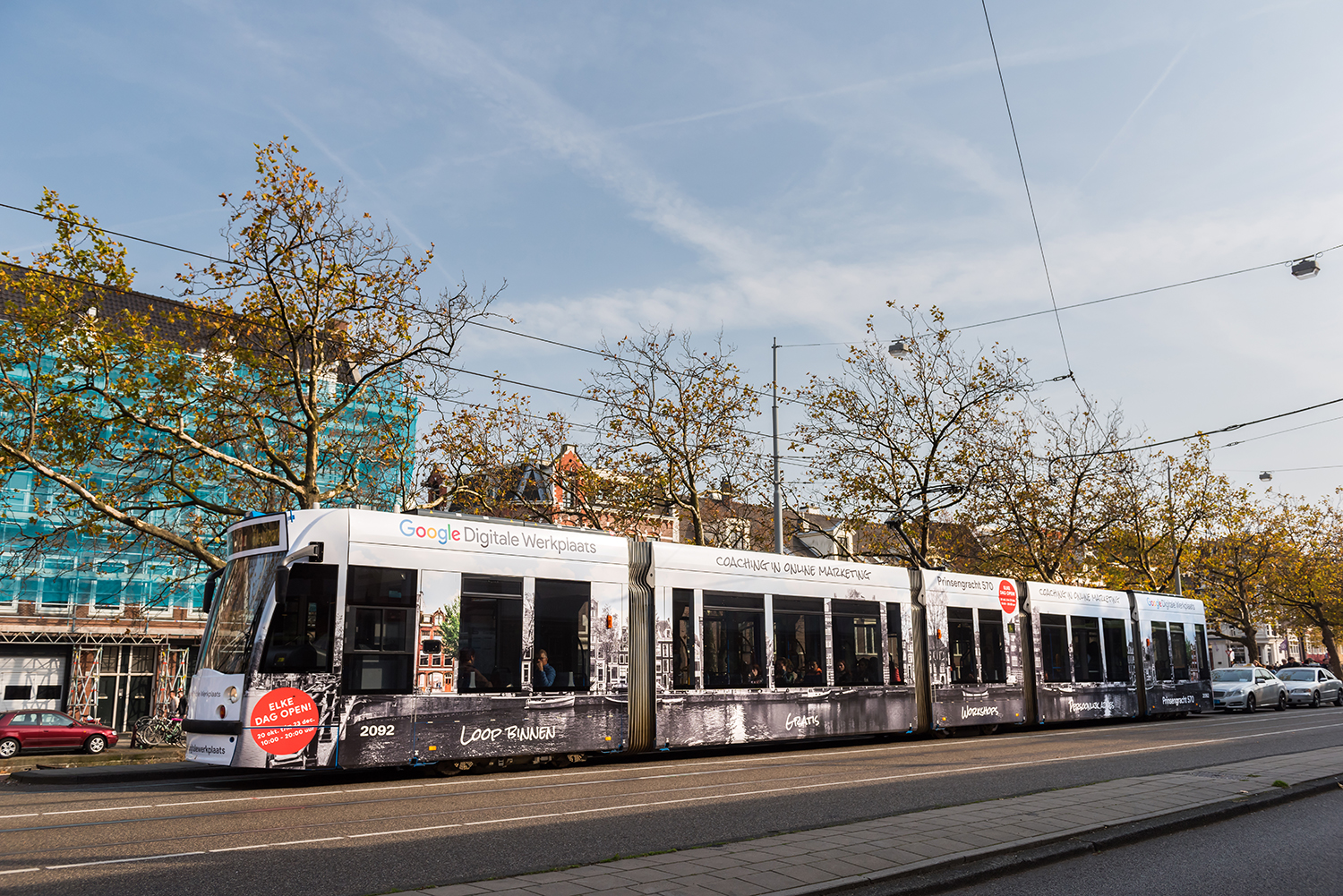 Er zijn diverse plekken waar voorbijgangers attent worden gemaakt op de nieuwe werkplaats, waar je terecht kunt voor workshops en persoonlijk advies op het gebied van Online Marketing. Op de Weteringeschans in Amsterdam is een abri die je naar de workshop-hotspot leidt, een niet te missen 3D-signing op het dak geeft met een opvallende pijl de richting van de werkplaats aan en er zijn abri’s te vinden op andere plekken in het centrum van Amsterdam. Daarnaast is de Digitale Werkplaats ruimschoots vertegenwoordigd op Amsterdamse trams. De Buitenreclame-Special is het resultaat van een samenwerking van Google, Bureau voor Reuring, SABMedia, De Media Balie en JCDecaux.