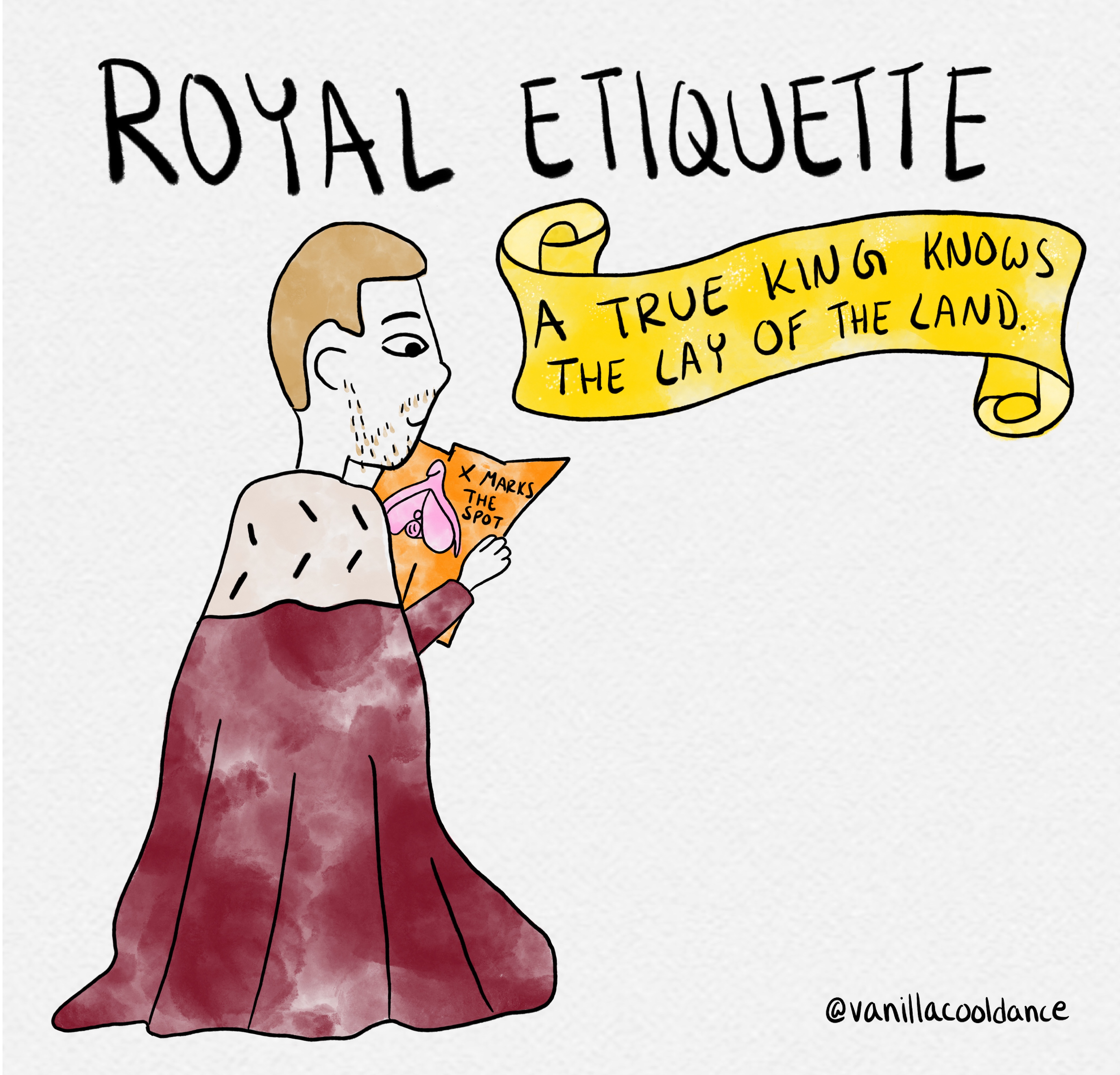 Vanillacooldance, de online stripserie van Jessica Stahl uit Amsterdam, vindt dat vrouwen ‘koninklijk genaaid’ worden in de slaapkamer en start een Koningsdagcampagne waarin het seksadvies geeft. In de social- en poster-campagne zijn het karikaturen van Willem Alexander en Maxima die sekstips uitbeelden die moeten leiden tot meer gelijkheid tijdens het liefdesspel, want: 'Een echte Koning weet wie het eerst komt.'